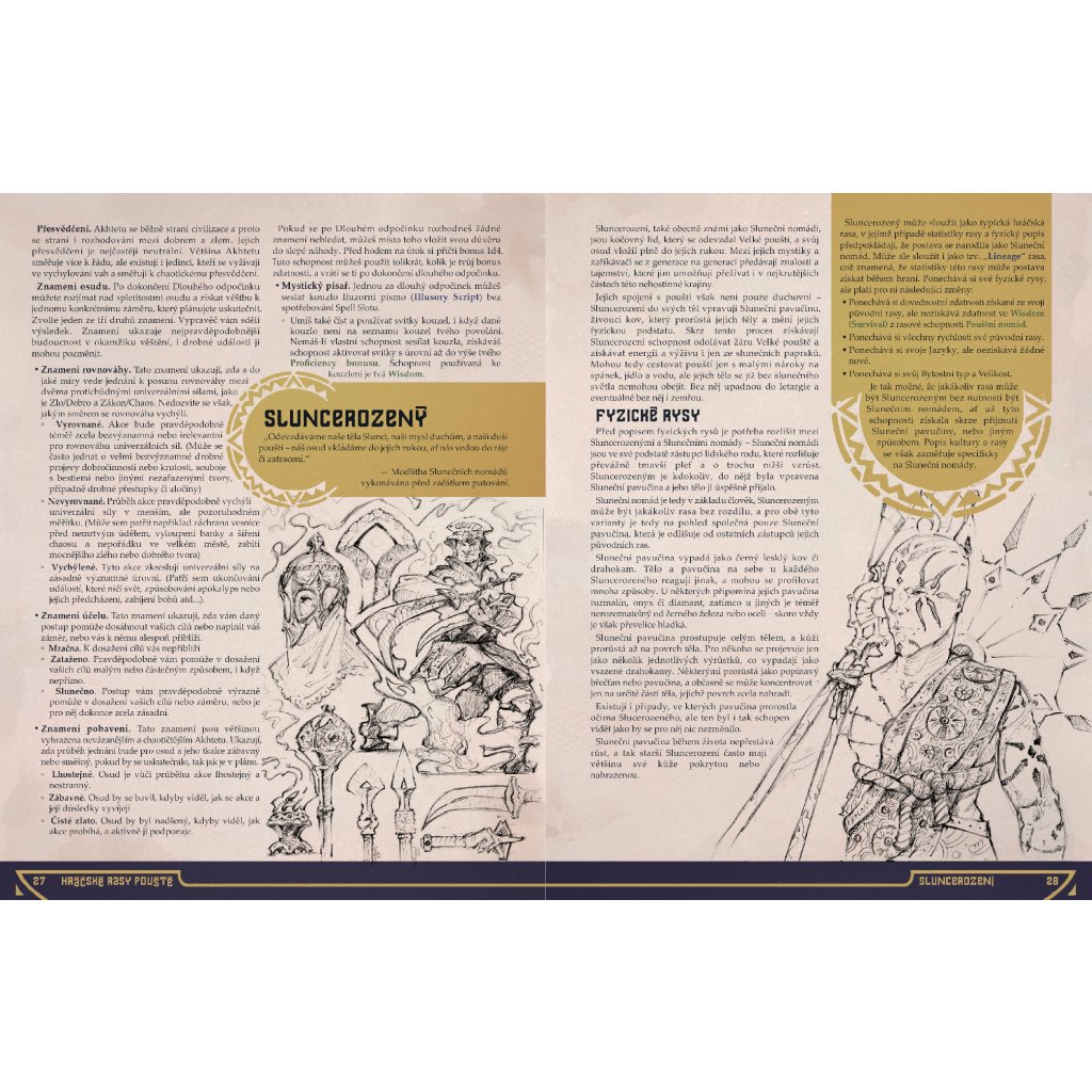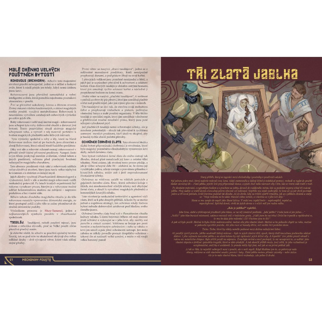 Vydejte se do Velké pouště, jejíž horký písek je výzvou i pro ty nejotrlejší z dobrodruhů. Je domovem Rabaku, hrdého hmyzího lidu, v jehož hierarchické společnosti jsou tělo a mysl každého jedince uzpůsobeny k určenému účelu. Sluncerození nomádi se zde na dunách plaví na svých písečných katamaránech a čerpají sílu ze samotného slunce, a opulentní národ Zhaarhaasiánů si poušť za pomoci démonických sil podmaňuje a přetváří ji k obrazu svému.