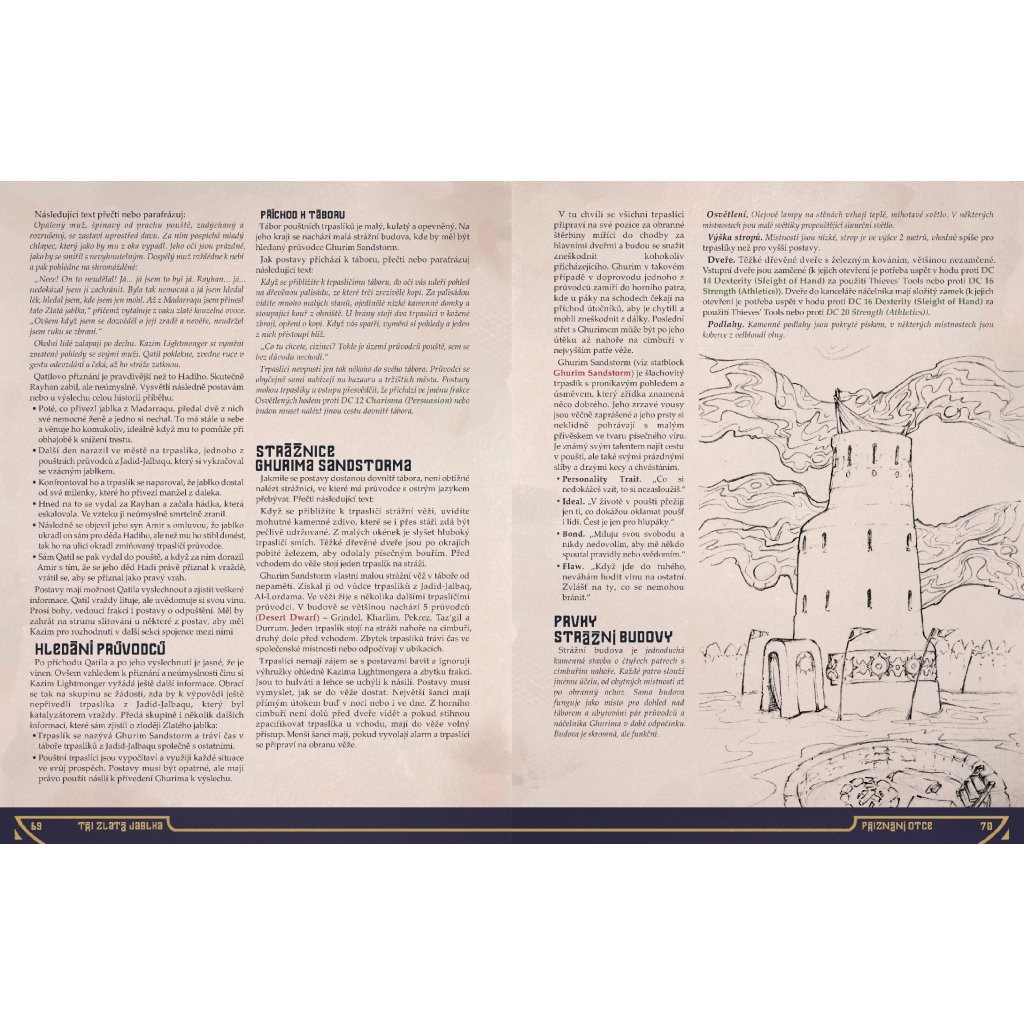 Vše je zasazeno do tajemného a magického settingu Velké pouště, který je primárně inspirován pohádkami Tisíce a jedné noci – dobrodružství však lze jednoduše použít i v jiném pouštním settingu.